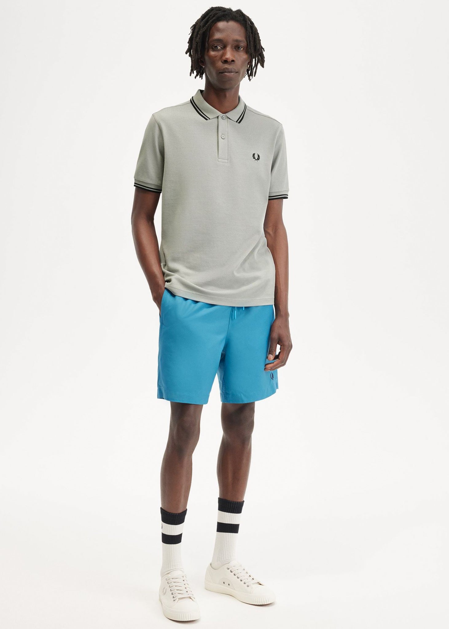 - Kraag met dubbele tips en manchetten: het kenmerk van de Fred Perry-stijl, met een vleugje iconisch detail.