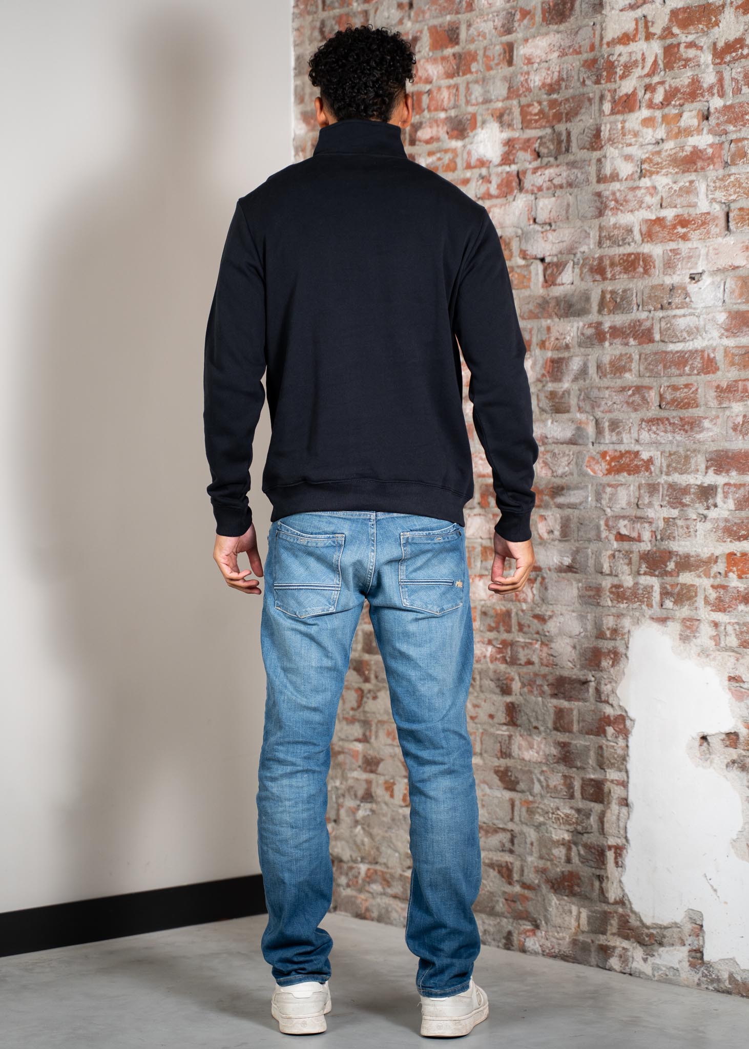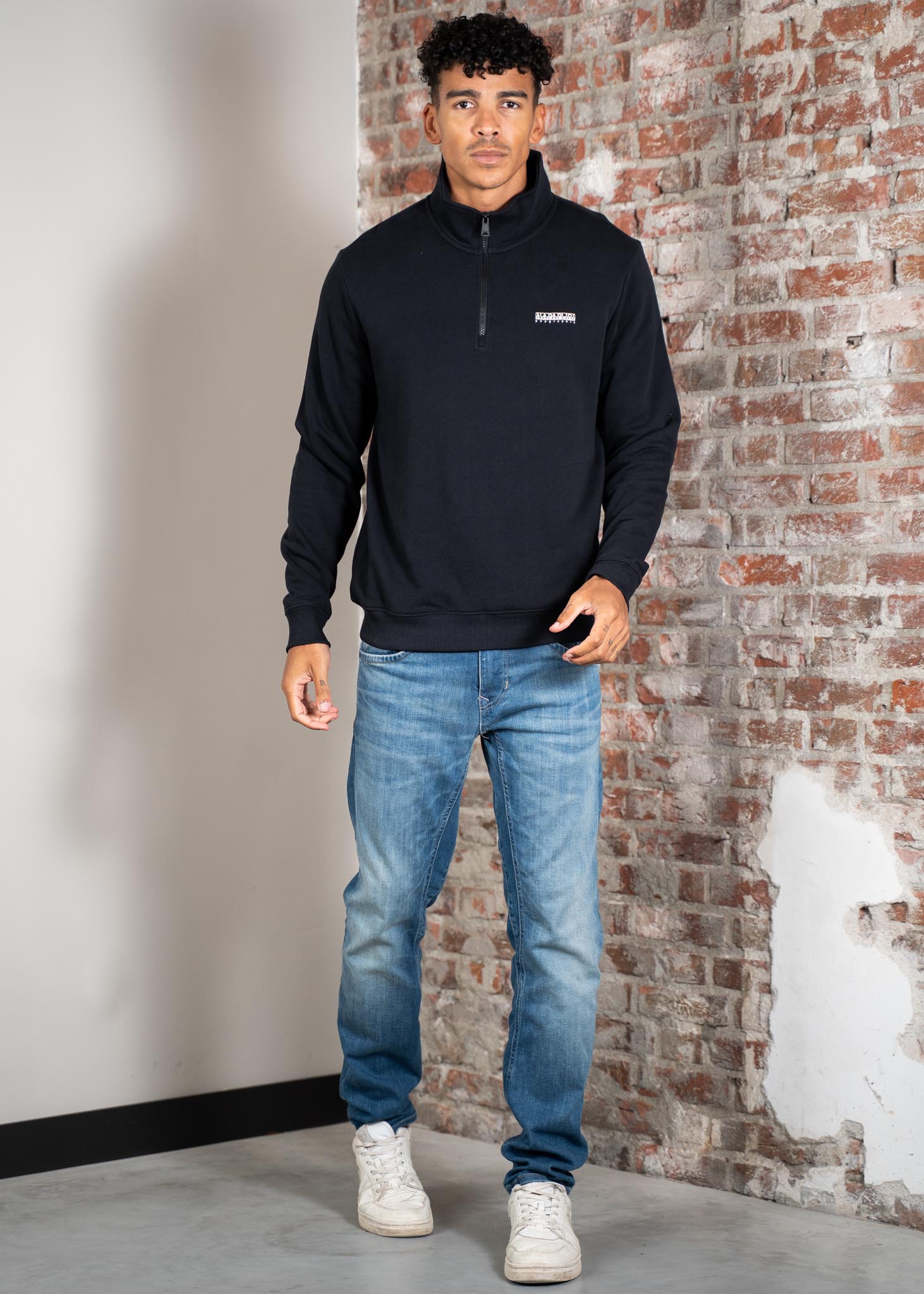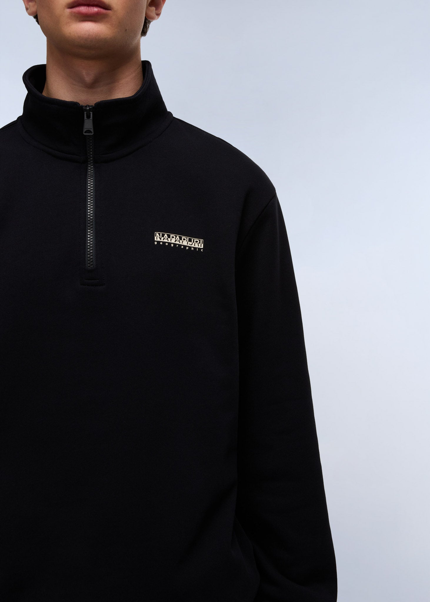 • Half zip met opstaande kraag