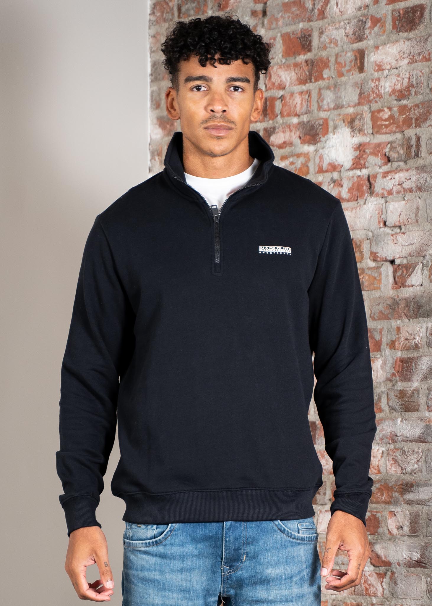 De Napapijri B Small Box Half Zip is een tijdloze pullover met een cleane, sportieve uitstraling. Gemaakt van zacht 100% katoen voor ademend comfort, met een halve rits en opstaande kraag voor veelzijdig gebruik. Het subtiele B Small Box logo op de borst geeft een herkenbare Napapijri touch.