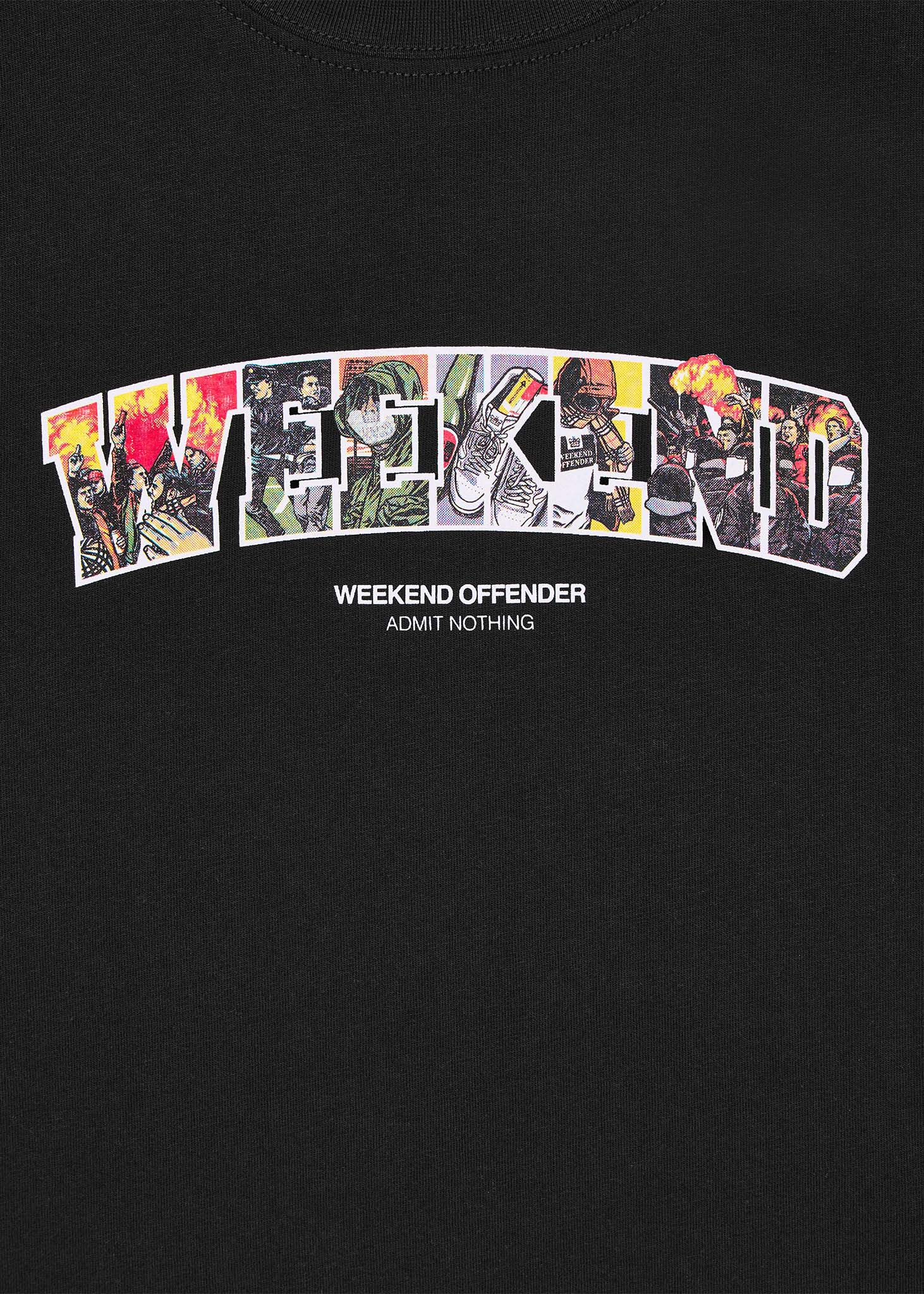 De Saturday Graphic Tee draait om de liefde voor het weekend. Het woord “Weekend” is gevuld met iconische elementen die de typische zaterdag van voetbalfans over de hele wereld laten zien.