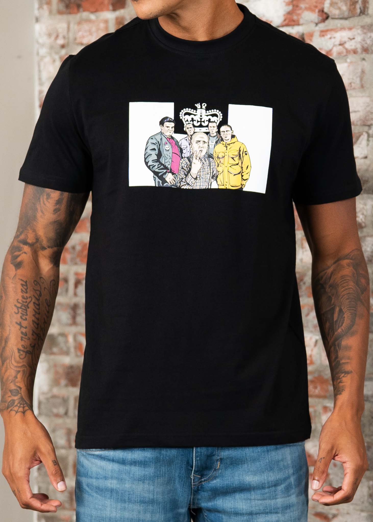De T.I.E. Graphic Tee verwijst naar de cultfilm *This Is England*, met de iconische characters opnieuw verbeeld in Weekend Offender stijl. Een statement tee die direct de aandacht trekt.