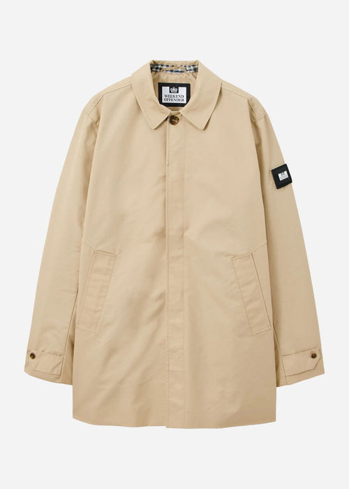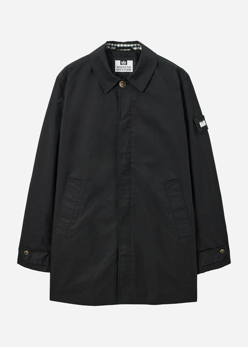 De Mid Length Mac is een klassieke overcoat met een moderne twist. Gemaakt van duurzaam twill met een subtiele glans en behandeld om waterafstotend te zijn. Een dunnere jas die je het hele jaar door kunt dragen, strak en tijdloos afgewerkt met de herkenbare Weekend Offender details.
