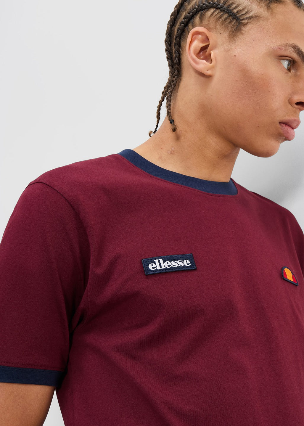 Das Ellesse Ferdorini T-Shirt in Burgunderrot bietet mit seinem Logo-Print und dem hochwertigen Jersey-Stoff einen stylischen und bequemen Look. Das T-Shirt verfügt über einen Rundhalsausschnitt, einen gerippten Kragen und einen gepolsterten Rand für zusätzlichen Komfort.
