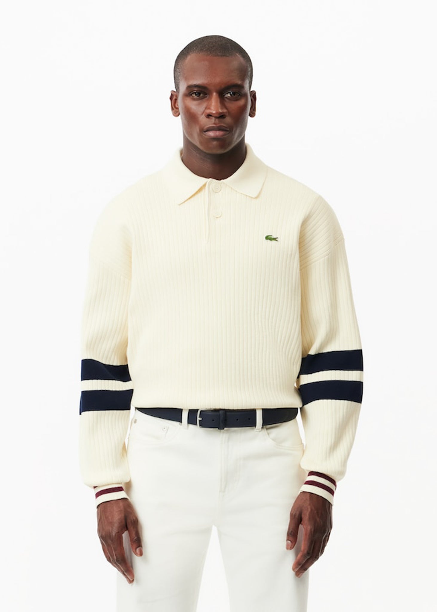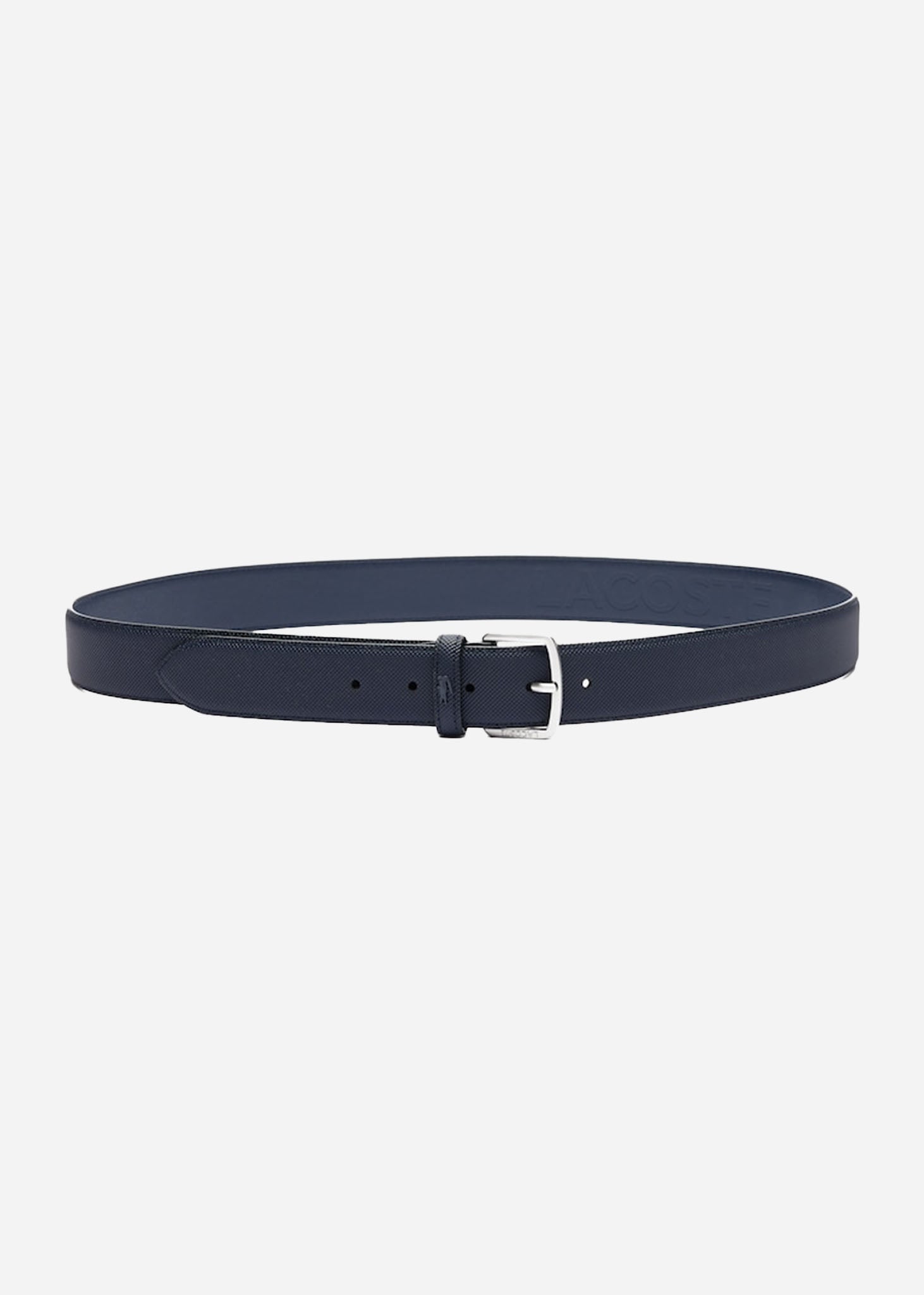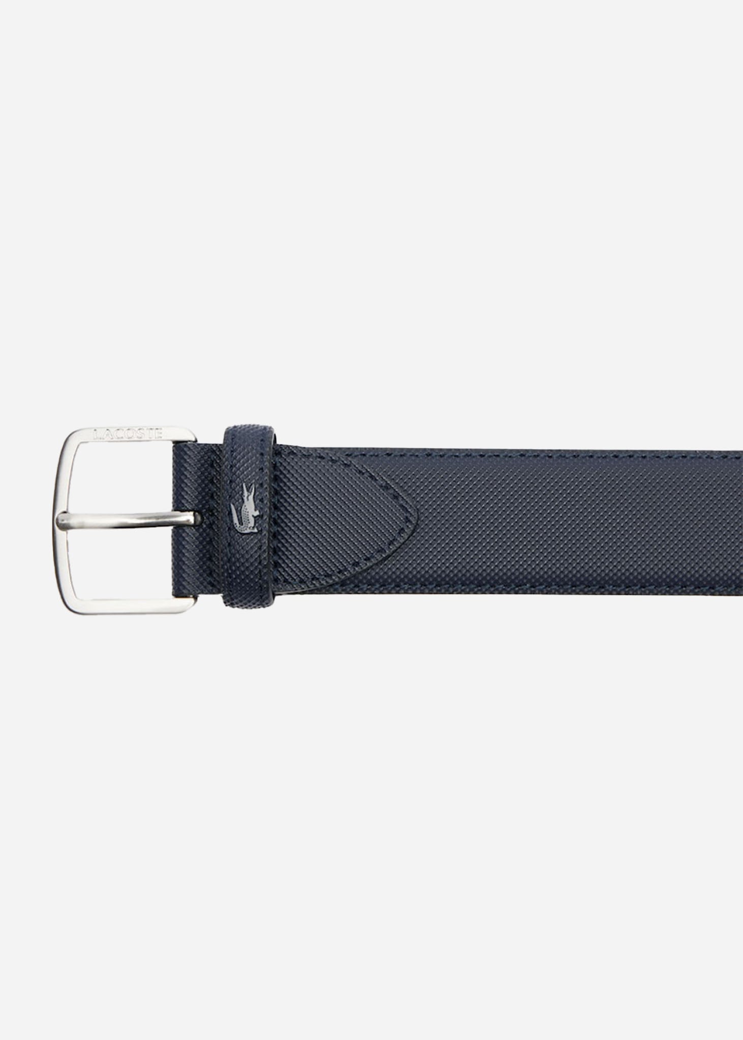 Voeg een iconische twist toe aan elke look met de Lacoste riem in navy, gekenmerkt door een piqué-effect. Licht van gewicht en praktisch, biedt deze riem ondersteuning zonder beperkend te zijn, en is perfect te combineren met je favoriete jeans.