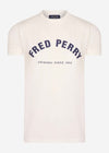 A ringer T-shirt in cotton jersey, printed with Fred Perry arch branding across the chest.