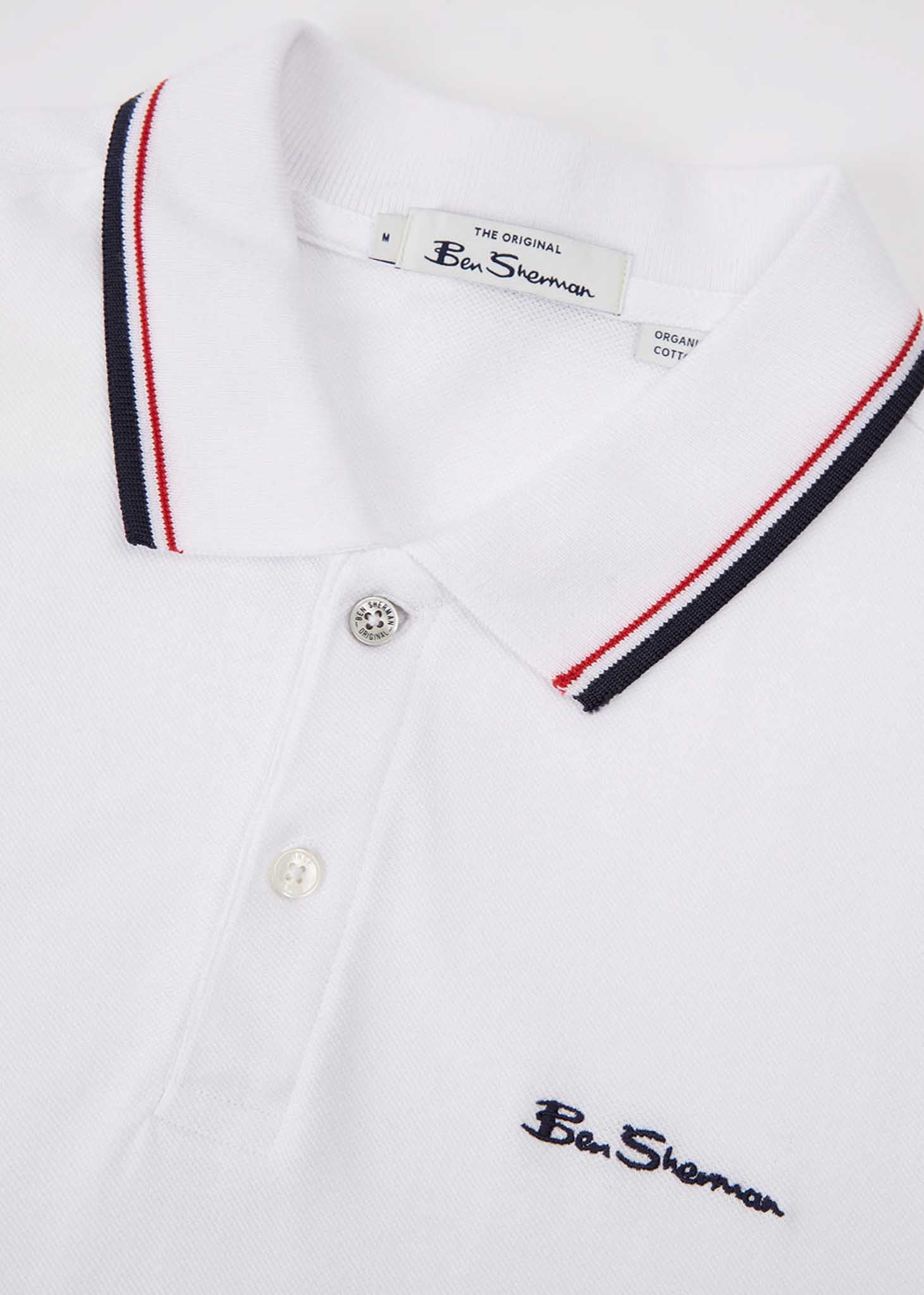 De signature polo is een stijlvolle en casual polo uit de collectie van Ben Sherman. De polo heeft een witte kleur en wordt afgewerkt met zwarte en rode accenten. Het Ben Sherman logo is afgebeeld op de borst. De polo is gemaakt van katoen en heeft een regular fit.