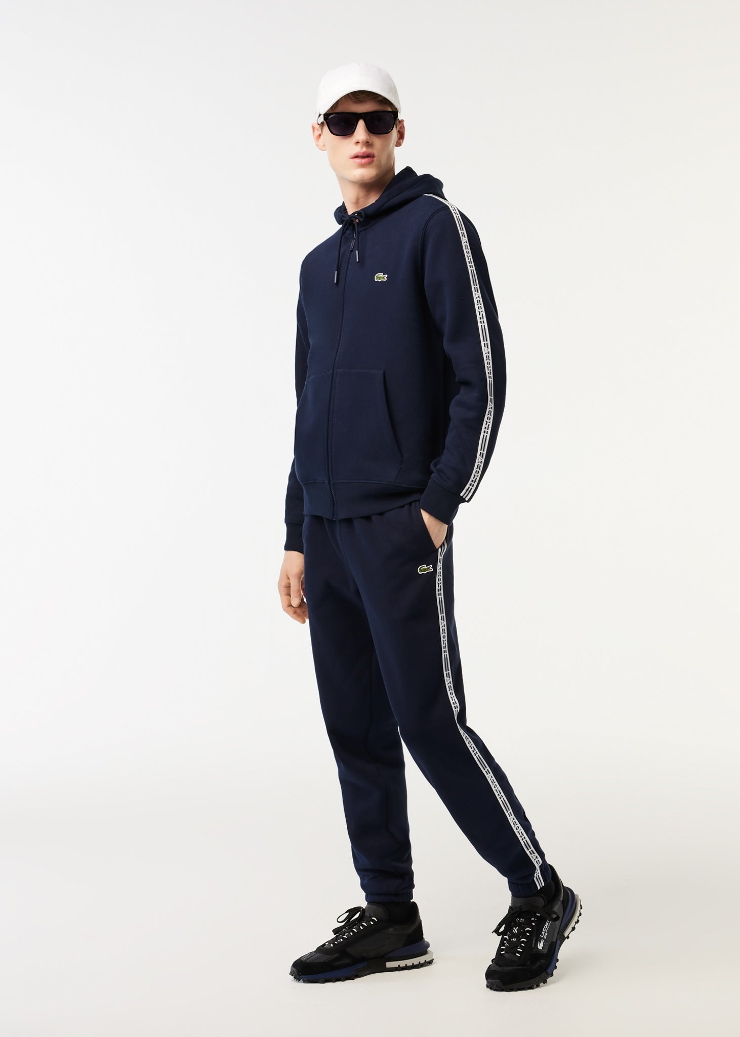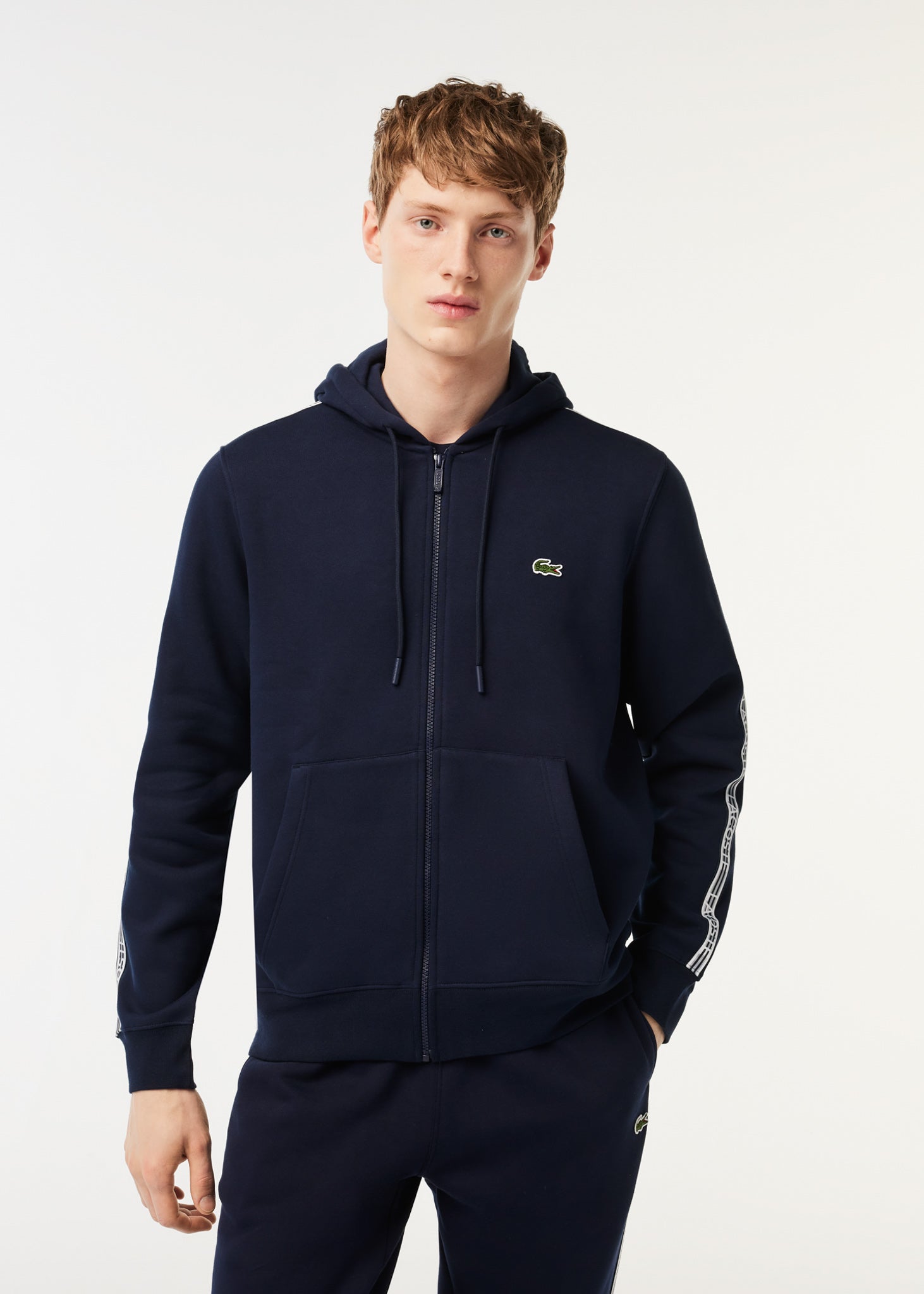 Lacoste Vesten  Contrast stripe zip through hoodie - navy blue