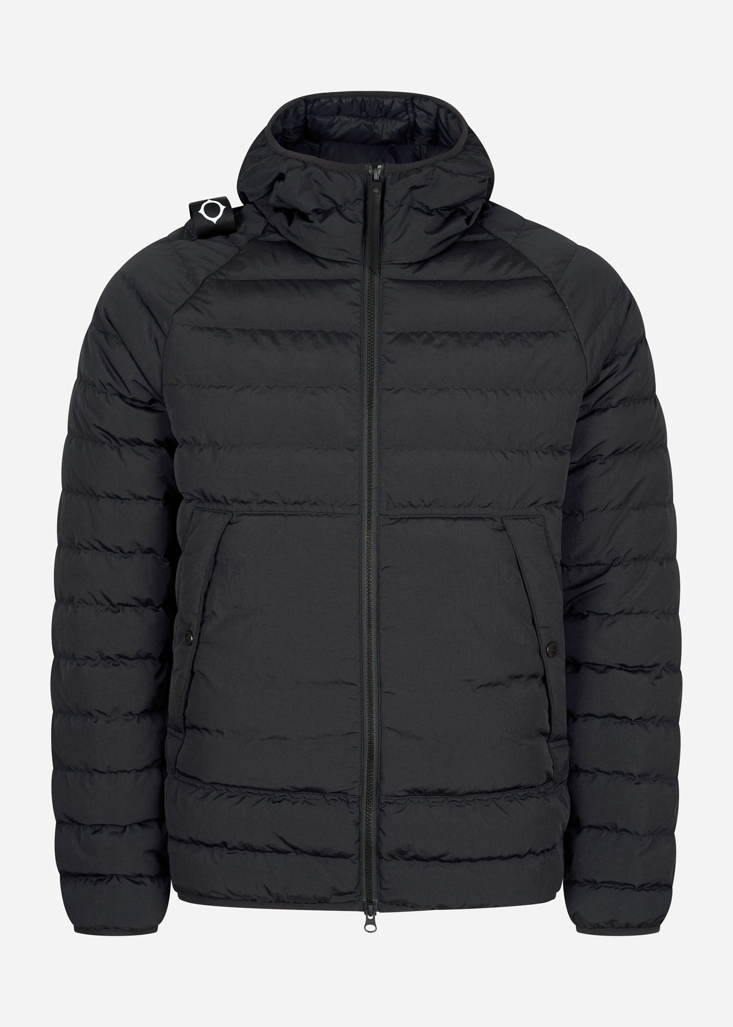 Het Hooded Down Jacket van MA.Strum is de ideale jas. Deze jas is gewatteerd en heeft een vulling van 90% dons en 10% veren. Hierdoor krijg je het nooit koud. Verder is dit kledingstuk voorzien van zakken aan de voorkant. Deze hebben een drukknoopsluiting. Ook heeft het Hooded Down Jacket stretchbanden bij de manchetten en aan de onderkant. Dit zorgt ervoor dat de jas altijd goed aansluit op jouw lichaam. Uiteraard is deze hoogwaardige jas ook voorzien van een afneembare MA.Strum badge op de rechterschouder.