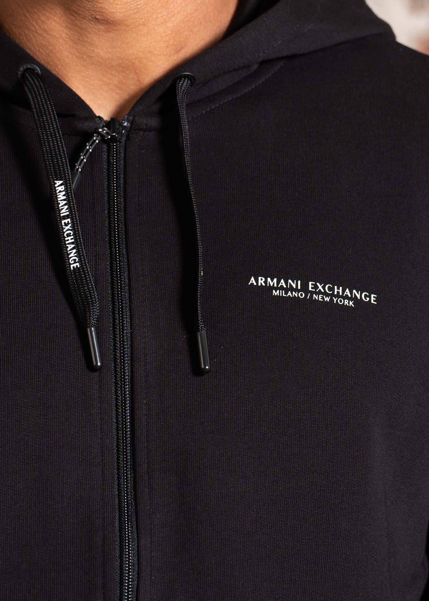 Sportief vest van zacht stretchkatoen, ontworpen voor dagelijks comfort. Het vest heeft een verstelbare capuchon met trekkoorden, een centrale ritssluiting en zijzakken. Afgewerkt met elastische ribboorden en een subtiel Armani Exchange logo voor een strakke, minimalistische look.