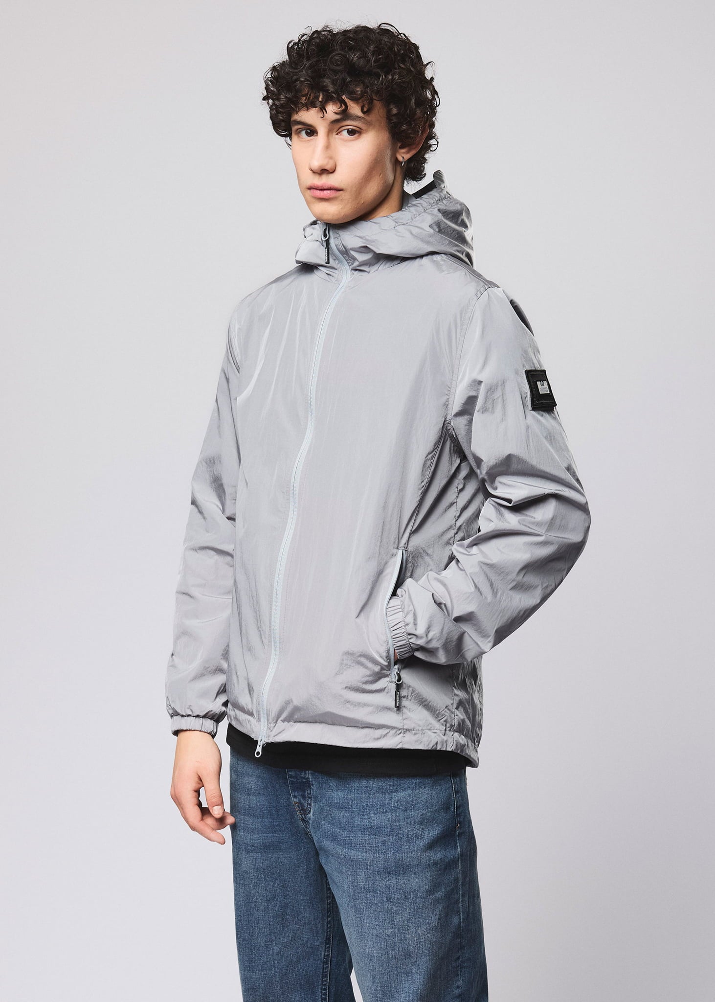 Lichte technical jas van parachute nylon met waterafstotende coating. Functioneel ontwerp met mesh voering en verstelbare details.