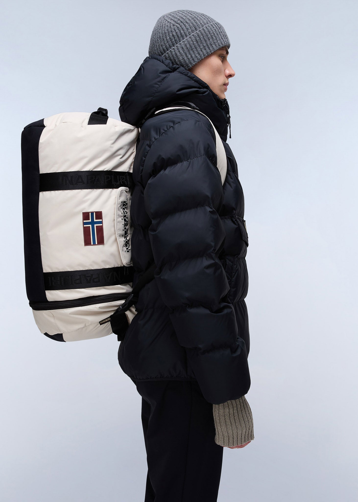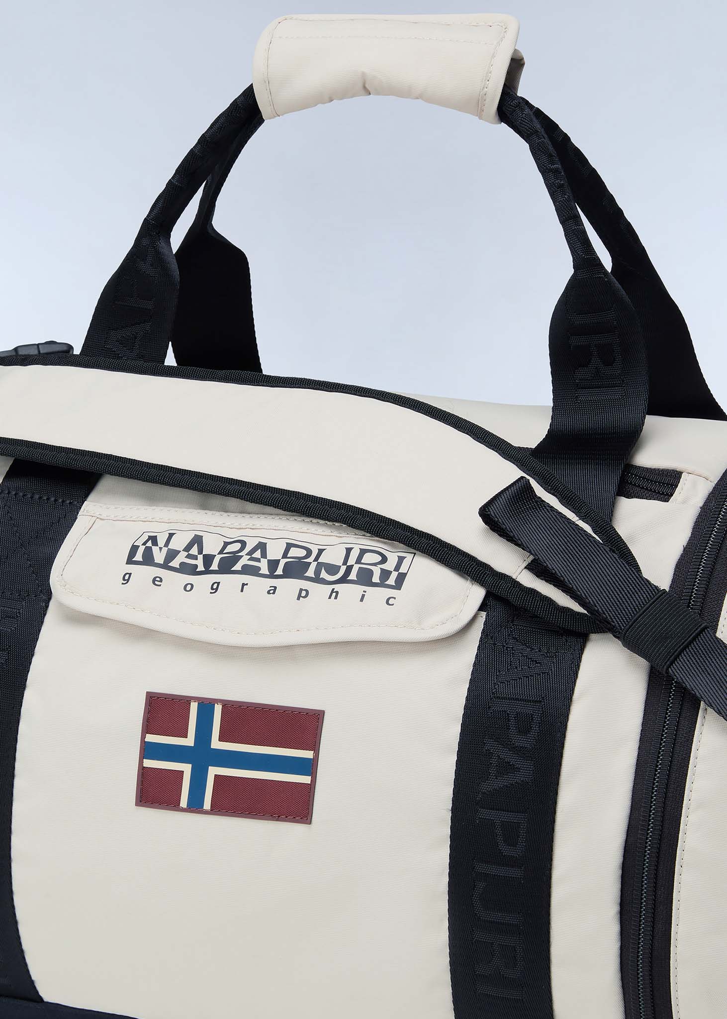 De Napapijri Bering Travel Bag is ideaal voor cabinebagage, gemaakt van 100% gerecycled polyester en voorzien van een verstelbare en afneembare schouderband. Deze reistas van 52,5 liter heeft een tweewegrits, een binnenzak en de kenmerkende Napapijri Geographic-print op het buitenvak.